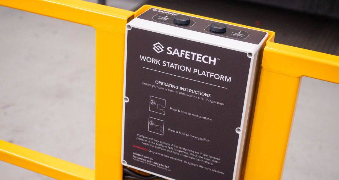The result is a custom-designed Workstation Platform, developed in-house by Safetech’s team of engineers. Currently in use at multiple pick-stations within one of Australia’s largest supermarket distribution centres, the platform allows workers to adjust its height, reducing the need to bend or stretch excessively while retrieving items from conveyor belts. This not only improves productivity but also helps prevent injuries related to repetitive motions and awkward postures.
