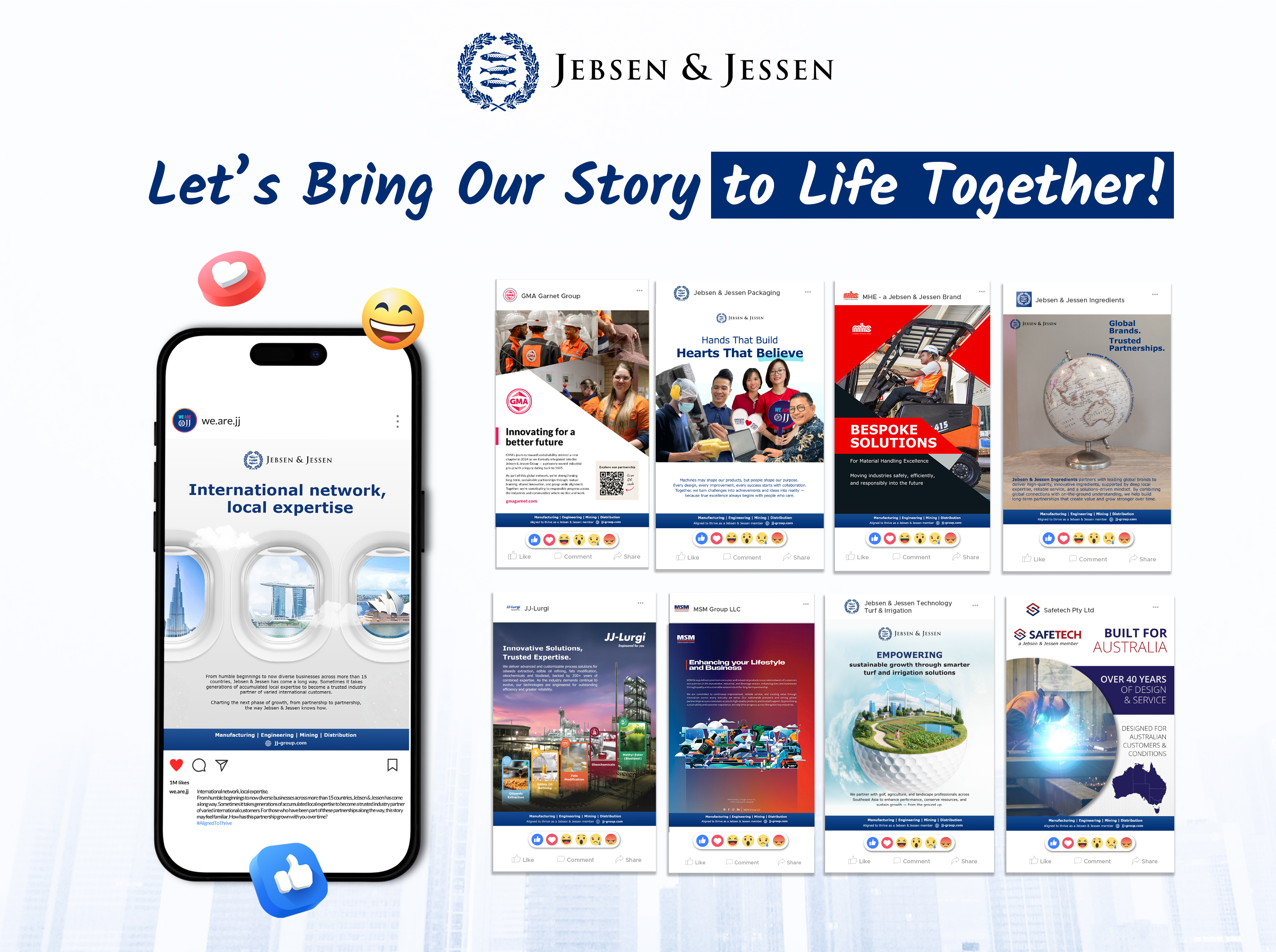 Business Units are joining in on the act, adding their own perspectives. Each team is sharing how these global messages come to life in their daily work, from local partnerships to industry expertise to collaboration across borders. Together, these voices form one connected narrative about who Jebsen & Jessen is today.